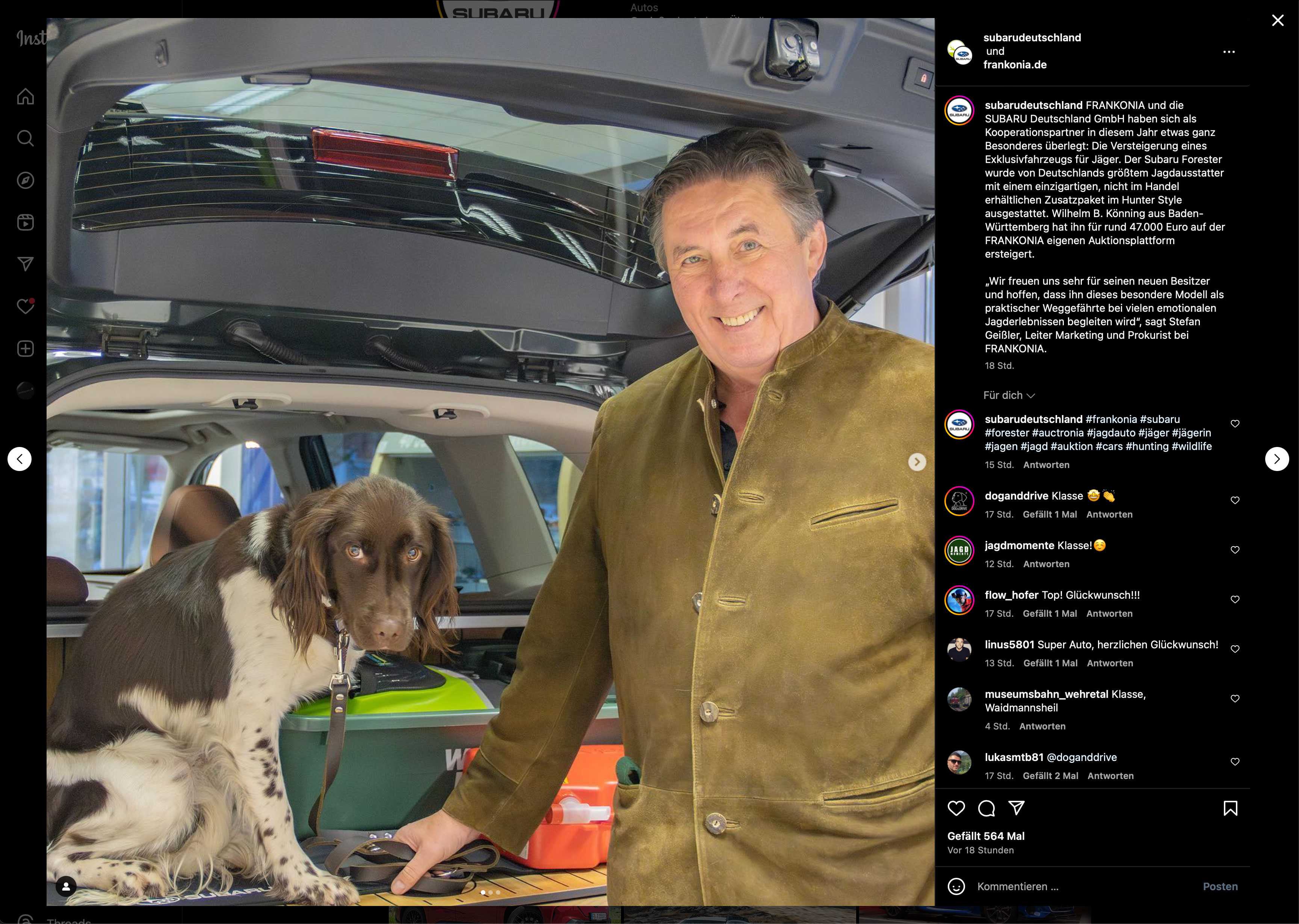 Den vollständigen Beitrag können Sie auf dem Instagram-Account von Subaru Deutschland oder auf der offiziellen Website von Frankonia finden.